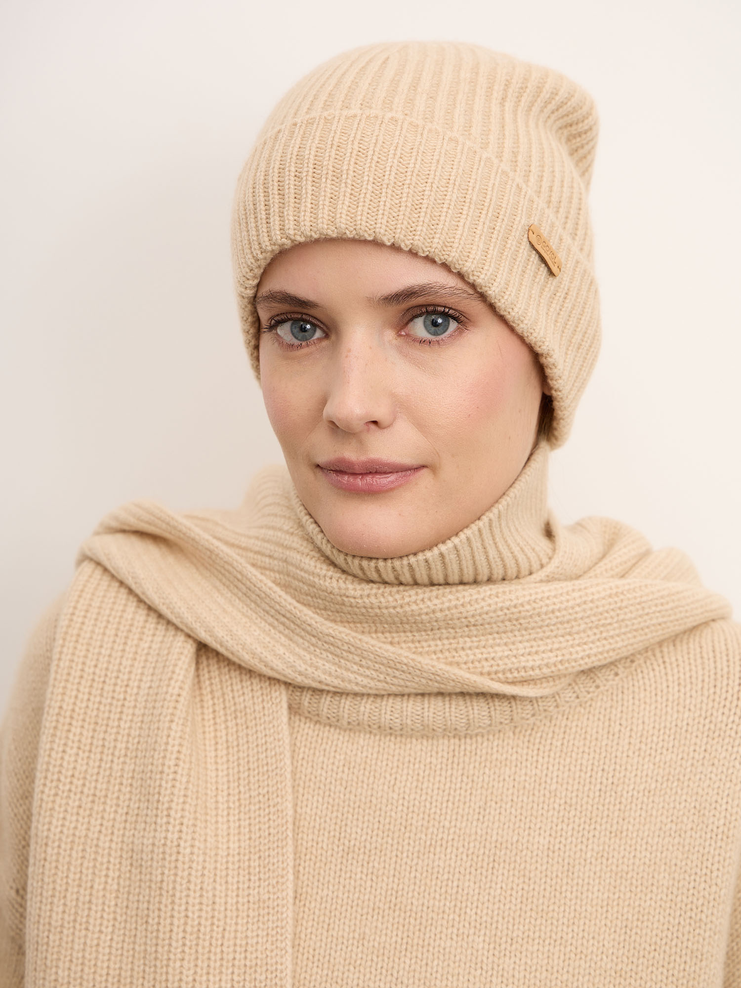 Бежевая кашемировая шапка — лаконичный и универсальный аксессуар, созданный для комфорта в холодное время года. Натуральный кашемир мягко окутывает теплом, обеспечивая легкость и приятные тактильные ощущения. Минималистичный дизайн делает модель идеальной базой для повседневных и более элегантных образов. Это гармоничное сочетание функциональности, премиального материала и сдержанной эстетики.