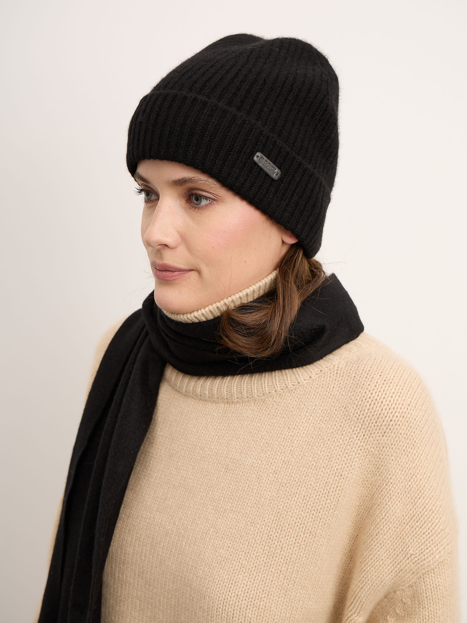 Шапка из кашемира в чёрном оттенке — это сочетание тепла, долговечности и безупречного стиля, созданное для тех, кто ценит качество и элегантность в каждой детали.