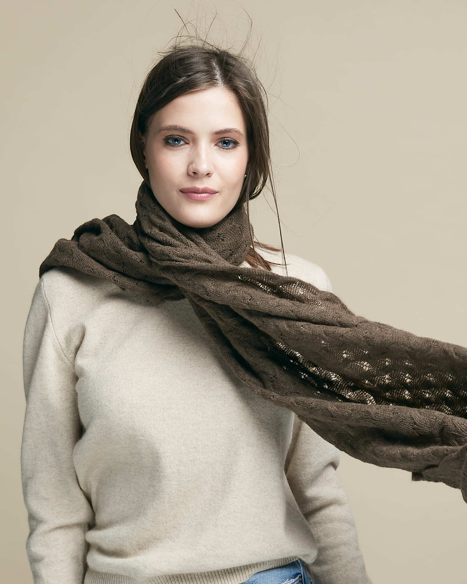 Палантин из пуха яка 15007b коричневый