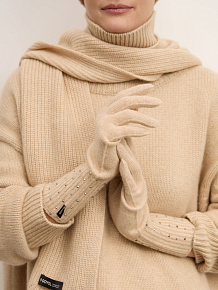 Изготовлены из натурального кашемира — редкого и ценного материала с исключительной мягкостью и легкостью. Волокна обеспечивают тепло без утяжеления, обладают гипоаллергенными свойствами и поддерживают комфортную терморегуляцию. Декор в виде страз придает изделию дополнительную эстетическую ценность и делает его более выразительным