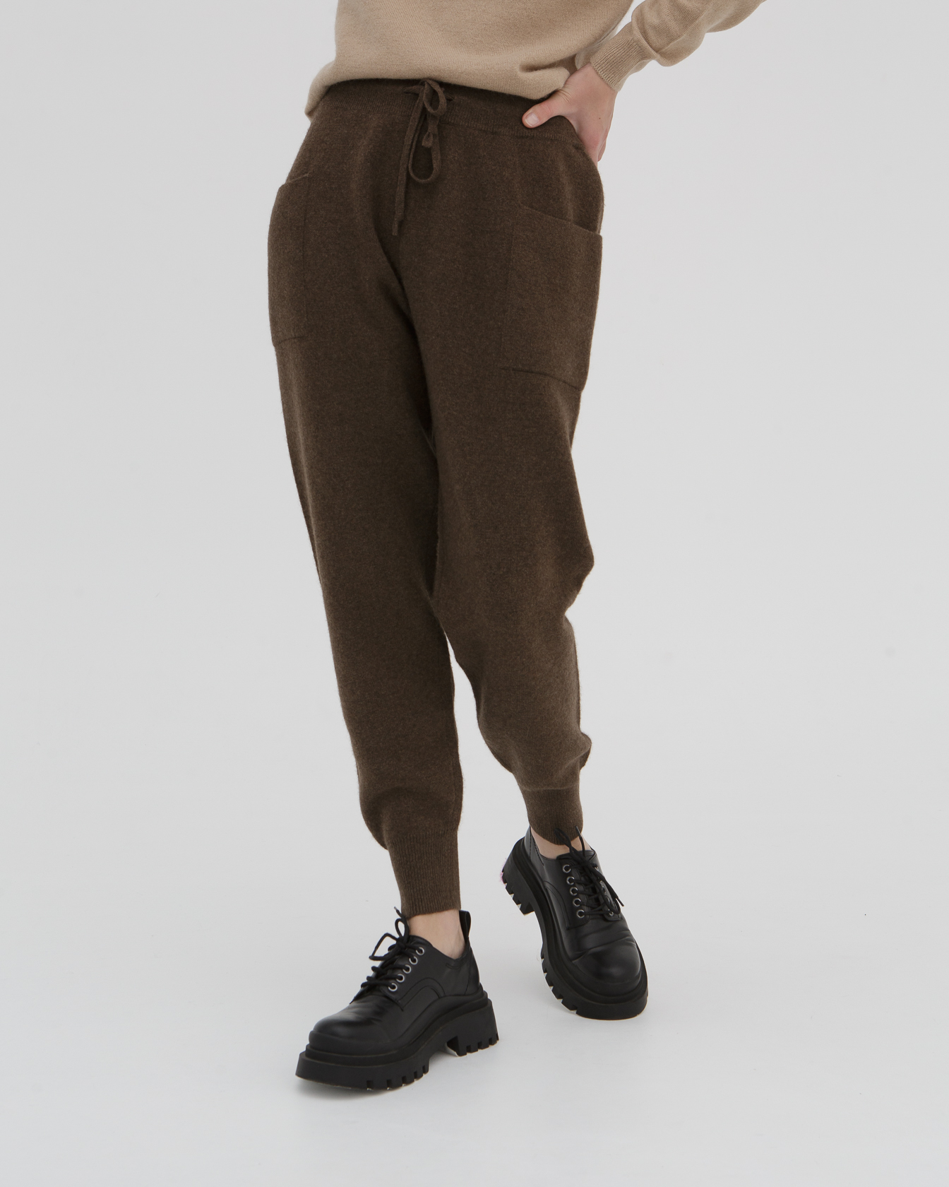Брюки из пуха яка — комфортная и стильная модель в спортивно-расслабленном стиле. Мягкая фактура и удобный крой делают их идеальным выбором для повседневной носки в прохладное время года.