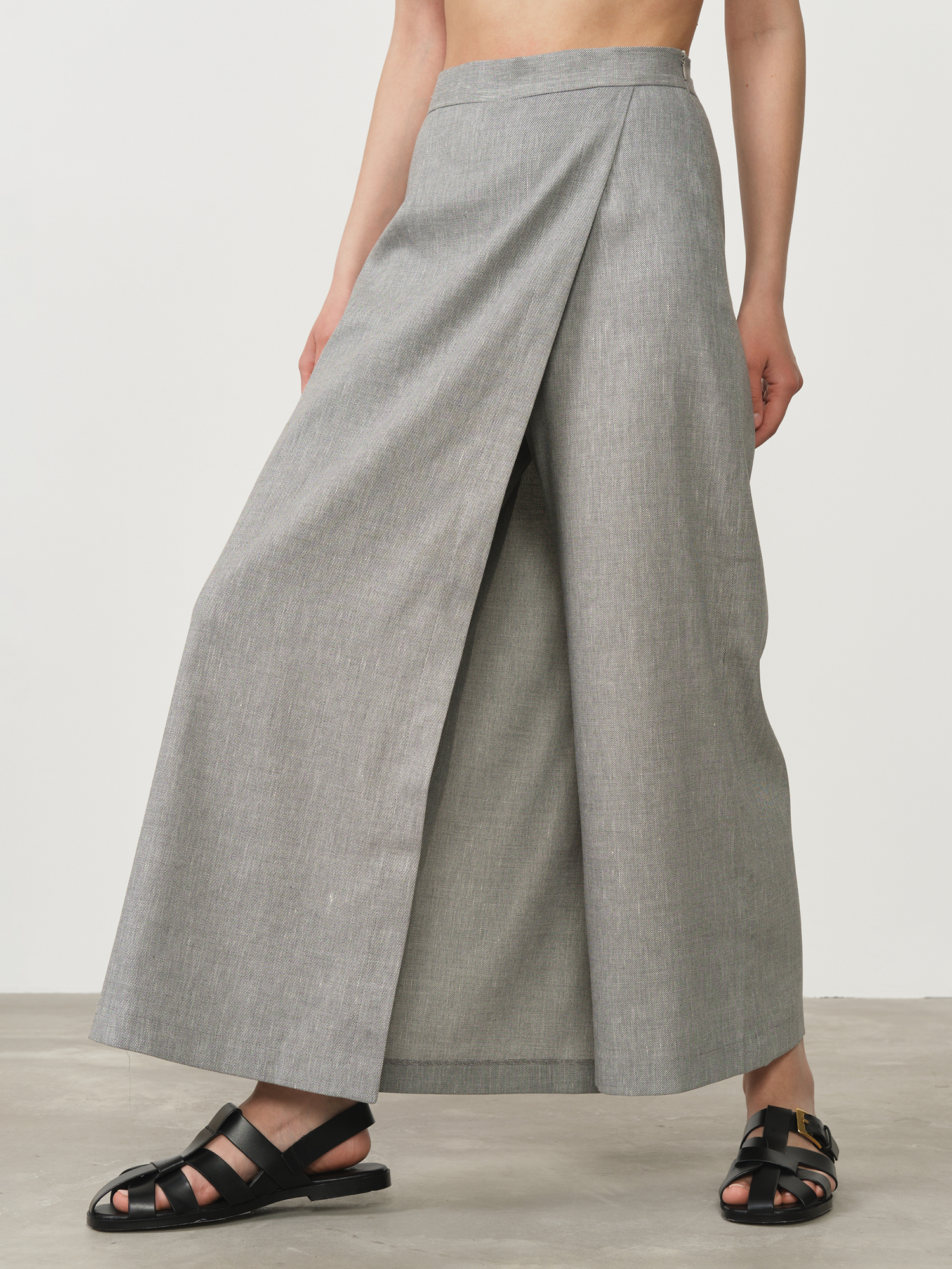 Юбка-брюки льняная 80600 светло-серая