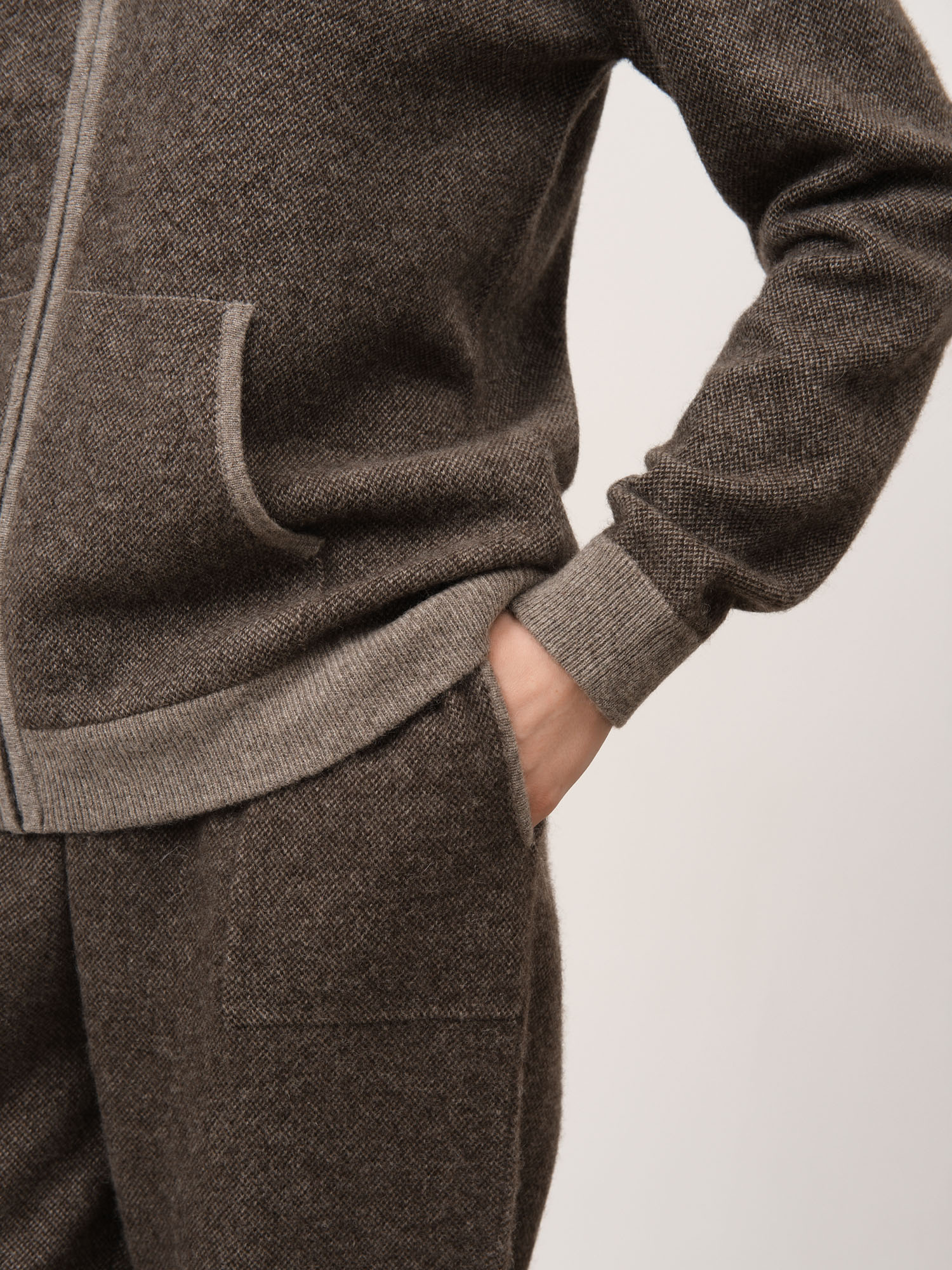 Эластичный пояс для удобной посадки, боковые карманы, манжеты по низу, плотная трикотажная структура, сохраняющая форму изделия. Высокое качество вязки обеспечивает износостойкость и комфорт.